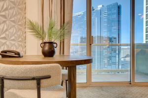 Blu Cashmere Premium Suite: MGM Signature Hotel aparthotel se nachází v centru Las Vegas a nabízí balkon s výhledem na zahradu. Je vzdálený jen pár kroků od Eiffelovy věže v Paris Hotelu a nákupního centra The Shops At Crystals. Tento aparthotel má jednu místnost, klimatizaci a bezplatné Wi-Fi v celém objektu.