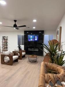 Located 8.4 km from Fremont Street Experience, Casa Valentino is a holiday home in Las Vegas featuring a fireplace and garden views. This air-conditioned property includes one room with four beds and offers private parking alongside complimentary WiFi.