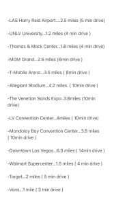 The property is situated within close proximity to several notable landmarks including The Shops At Crystals at 5.5 km, Eiffel Tower At Paris Hotel at 5.6 km, CityCenter Las Vegas also at 5.5 km, The Sphere Vegas approximately 5.8 km away, and Mandalay Bay Convention Center around 5.9 km from the apartment.