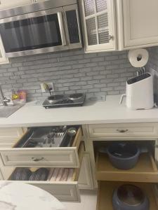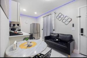 Exceptionally clean, modern, and well-designed studio apartment with a mini split air conditioner above the bed and a small couch with a table for two. The kitchen was fully stocked with slices, dishes, an air fryer, crock pot, pots and pans while the bathroom had shampoo, conditioner, body soap, curling iron, flat iron, blow dryer and wet dry styling brush. The landlord gave clear instructions before arrival making check-in easy.