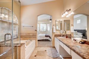 Located in Las Vegas, Luxury 6 BR Home Large Pool & Spa with Grassy Yard offers a spacious holiday home experience featuring a private pool and free WiFi. This single-room property boasts garden and pool views and is situated just 12 km from Mandalay Bay Convention Center and 13 km from Shark Reef Aquarium.