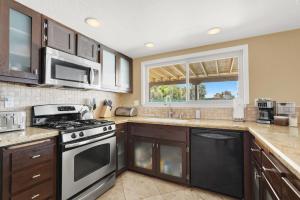 Inside, the holiday home boasts four separate bedrooms equipped with six beds along with air conditioning to ensure comfort throughout your stay. Guests will find three bathrooms featuring a hot tub, bathtub, shower, hairdryer as well as complimentary toiletries including shampoo. The fully equipped kitchen includes an oven, stovetop, microwave, dishwasher, refrigerator, toaster and kitchenware to prepare meals easily.