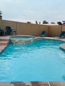 Located in Las Vegas, Paradise is a holiday home featuring a private pool and free WiFi. This spacious accommodation offers one room with five beds and includes three bathrooms, combining comfort with privacy through its soundproofed walls and private entrance. The property also boasts stunning views from its terrace.
