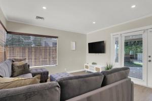 Guests benefit from free Wi-Fi coverage available throughout the property along with private parking on site at no extra charge. The ground-floor unit has a private entrance enabling self check-in/check-out options while safety measures such as smoke detectors and carbon monoxide detectors are installed within the premises. Outdoor amenities include patio furniture suitable for outdoor dining by the pool or garden area.