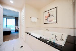 The penthouse featured a spacious layout with a full kitchen, jacuzzi, and two showers. The location was conveniently close yet away from busy casinos. Friendly staff provided excellent service, including free valet parking. Rooms were well-stocked with towels and kitchen essentials. A community living area was available for conjoined rooms.