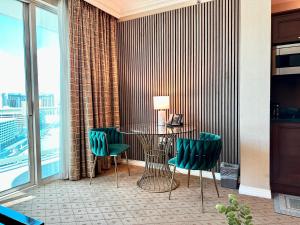Zakwaterowanie obejmuje apartament z dwoma łóżkami, osobnym salonem oraz wyposażonym aneksem kuchennym ze stołem grzewczym, lodówką, mikrofalówką, tosterem i naczyniami kuchennymi. W łazience dostępny jest zarówno prysznic typu walk-in, jak i wanna spa wraz z bezpłatnymi kosmetykami. Dodatkowo w pokoju znajduje się klimatyzacja, dźwiękoszczelne ściany, telewizor z płaskim ekranem oraz zestaw do parzenia kawy i herbaty, goście mają też sejf, żelazko i pościel.
