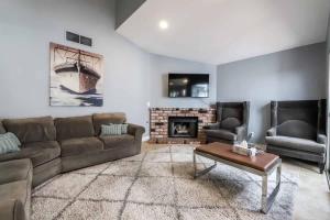 Inside, guests will find air-conditioned rooms featuring five beds and one futon for added comfort. The fully equipped kitchen allows for convenient meal preparation, while three private bathrooms enhance privacy during stays. A fireplace adds warmth and ambiance throughout the living area.