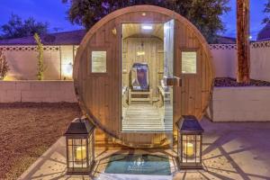 Featuring a private pool and sauna, Vegas Mansion: Pool, Spa, Sauna, Theatre, By STRIP is located in Las Vegas just 5.3 km from The Sphere Vegas and 3 km from Harry Reid International Airport. This spacious villa includes one living room and five bedrooms with four bathrooms.