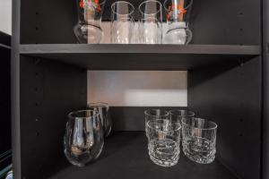 The apartment comprises one bedroom furnished with a bed and wardrobe. Guests can prepare meals in the fully equipped kitchen featuring a stovetop, refrigerator, dishwasher, microwave, toaster, coffee machine, electric kettle, kitchenware and dining table. Additional room amenities include individually controlled air conditioning, heating facilities, an alarm clock, work desk, trouser press, ironing equipment including iron and board as well as a safe deposit box. The living area features hardwood flooring alongside comfortable seating such as a sofa.